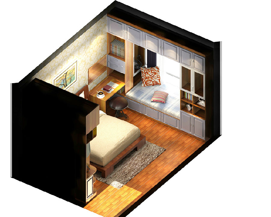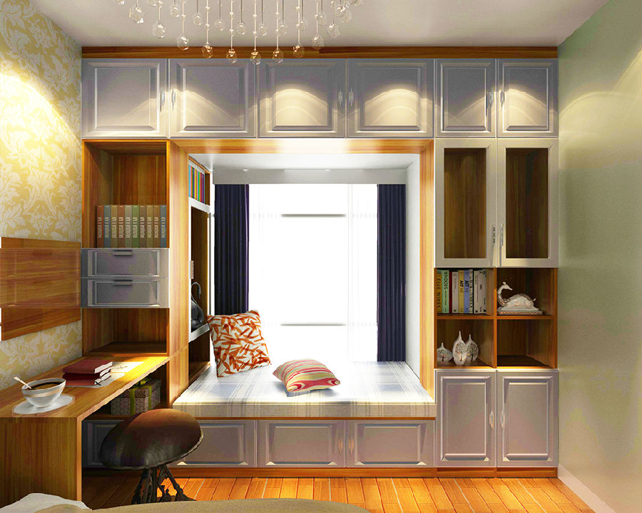 時(shí)尚洋氣的榻榻米造型,多個(gè)收納空格,不僅在功能上實(shí)現(xiàn)了一房多用,還擴(kuò)大了整體的收納空間。暖暖的色感,讓人有一種寧靜感,雖然面積不大,但是一切都井然有序,是小家庭的選擇。