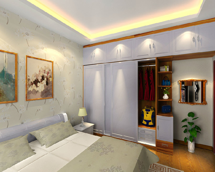 清新淡雅的莫蘭迪配色,讓整個視覺更加飽滿。純白色的衣柜顏色,讓整體布局更顯寬闊,也更具有空間感,視覺體驗上也多了一份高雅,在燈光的照耀下,更加清新脫俗。