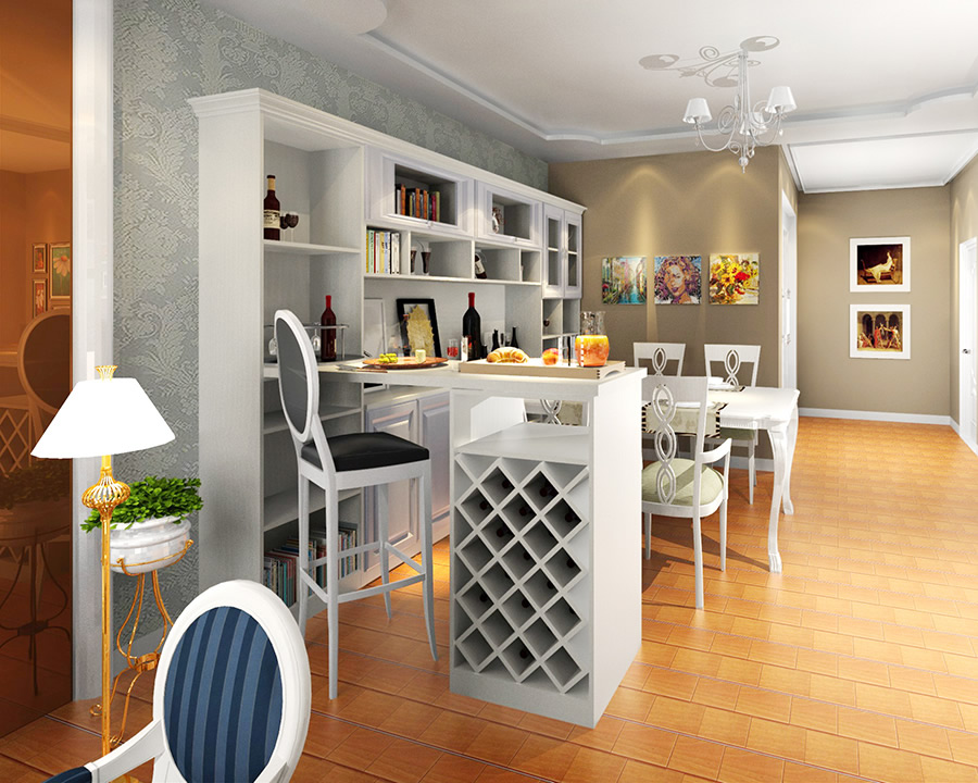 既有法式的浪漫,又有現(xiàn)代的時尚,餐桌和餐椅均為米白色,其線條也十分流暢自然,在制作工藝上極其考究,在白色吊燈的點(diǎn)綴下更顯典雅風(fēng)范。