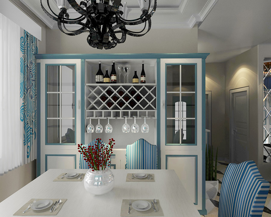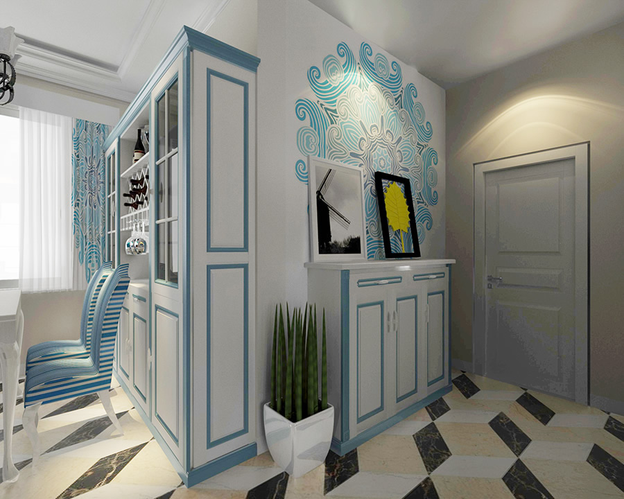 清新靚麗的色彩,讓人眼前一亮,拼接圖形 的大面積使用,讓整體氛圍更加富有神秘感,尤其是背景墻與窗簾布藝的使用,更加的凸顯文藝范,純白色的花瓶中的小花,讓整體視覺更加的溫馨與舒適。