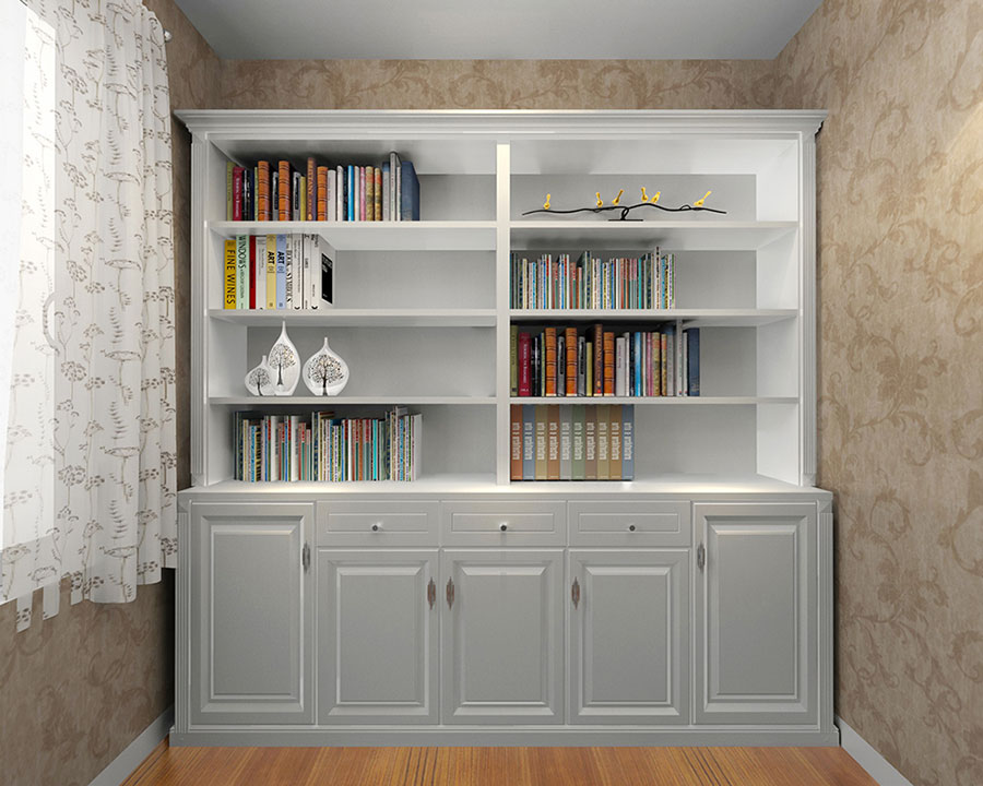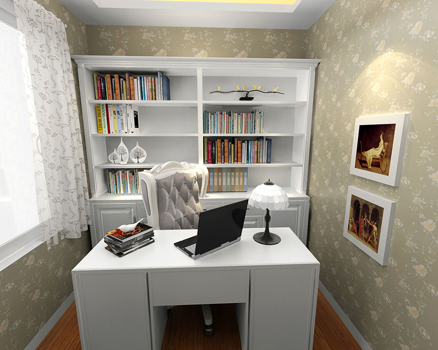 開放式的空間造型,更能凸顯美式的自由與奔放,同時(shí)整體空間也更顯寬闊。純白素雅的色彩,襯托地書桌更加大氣磅礴,沒(méi)有過(guò)于復(fù)雜的裝飾,一切都是那么渾然天成。