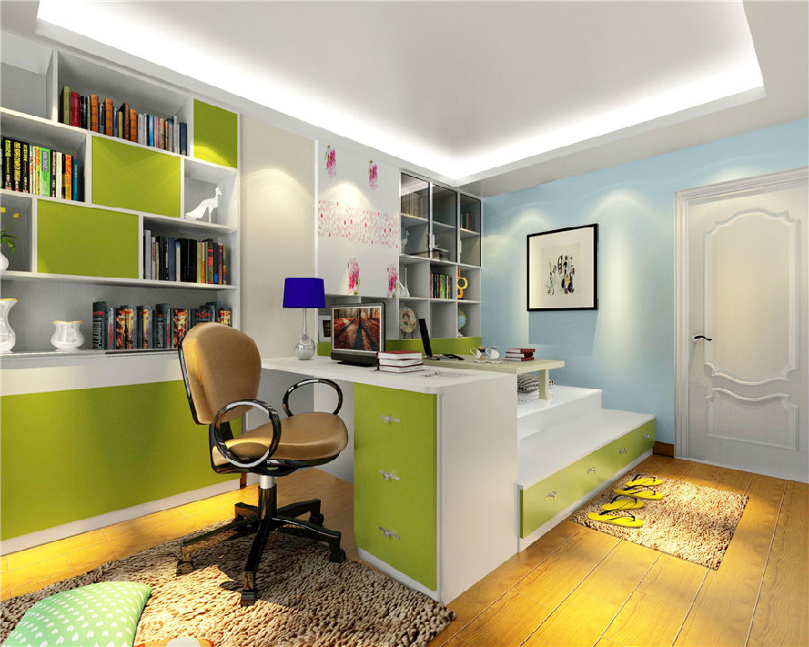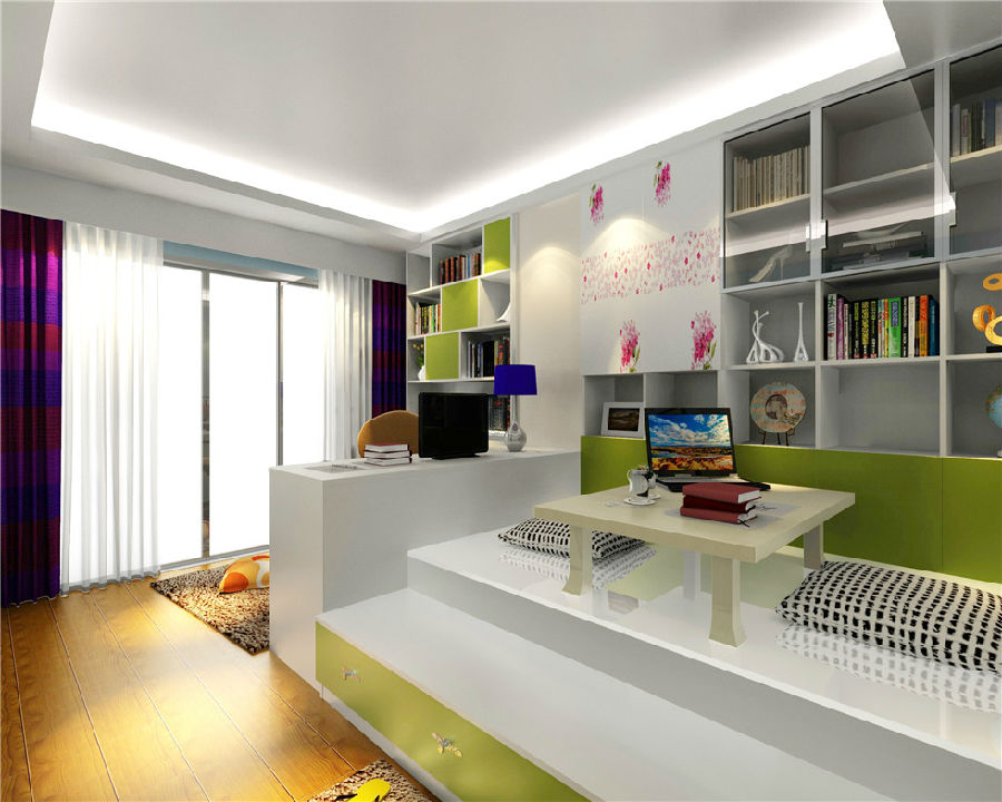 簡(jiǎn)潔流暢的線條中,運(yùn)用大量的護(hù)眼色彩,讓人視覺上更加放松。榻榻米的設(shè)計(jì)造型,獨(dú)立的空間,真正實(shí)現(xiàn)一房?jī)捎茫^對(duì)是小戶型家庭的首選。