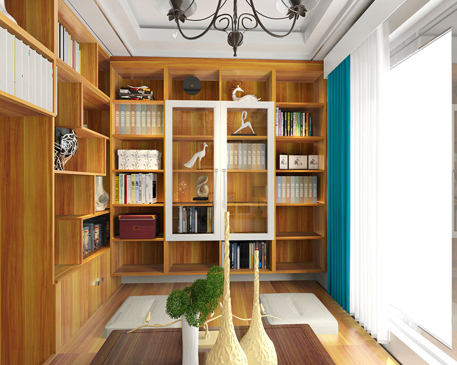 轉(zhuǎn)角式書柜造型,在擴大收納面積的同時,也為格局增添了一種神秘感。整體布局采用原木色系,營造出一種質(zhì)樸的整體氛圍,讓您更好地回歸自然。
