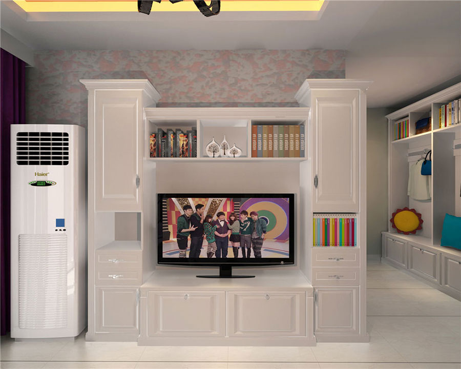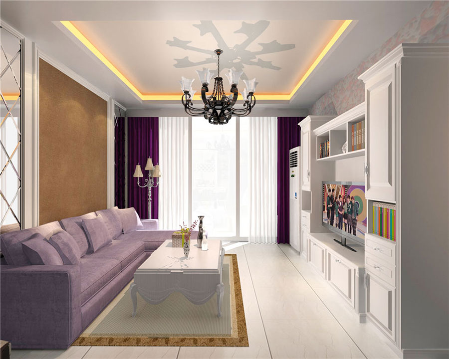 入眼處,便被精致的吊燈所吸引,饒有設(shè)計(jì)質(zhì)感的造型,純黑色的金屬質(zhì)感,與整體的雅白色交相呼應(yīng),整體布局更顯和諧與優(yōu)雅。燈光下,雅白色的電視柜與背景墻形成明顯的色彩反差,給人眼前一亮的感覺。